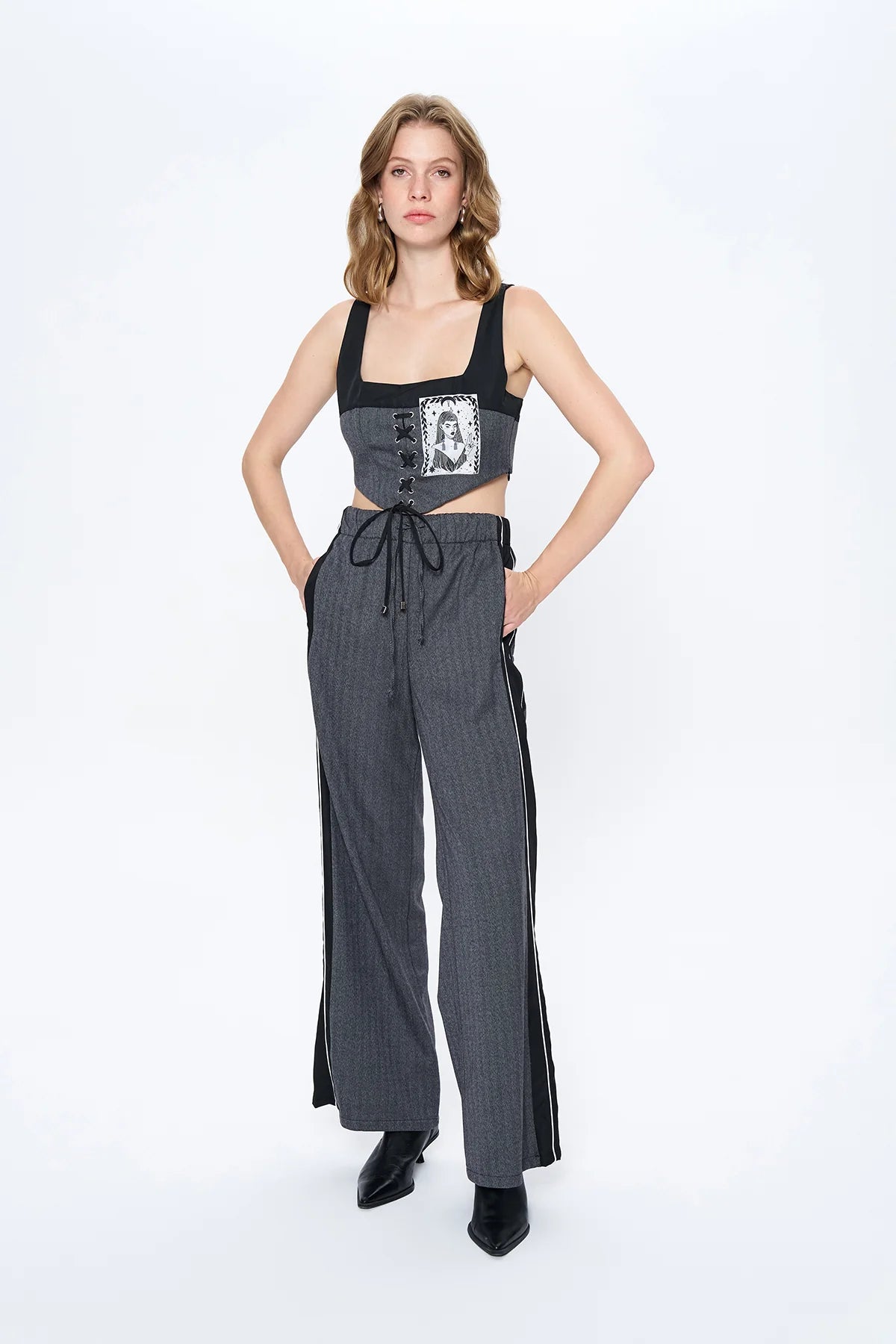 64% Polyester, 34% Viscose en 2% Elasthan